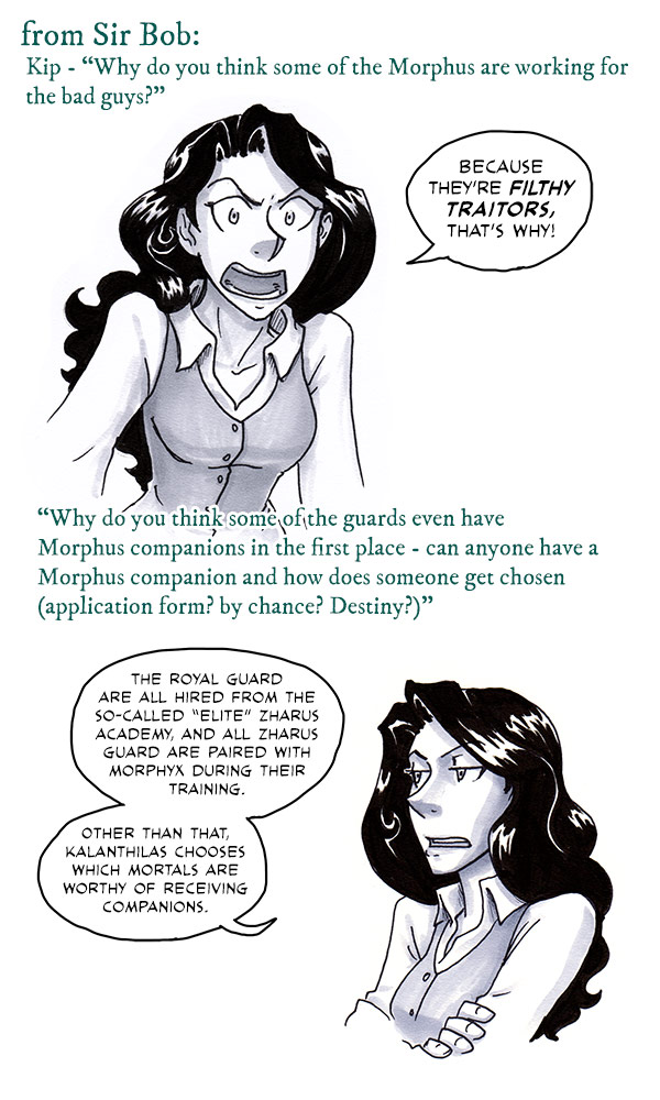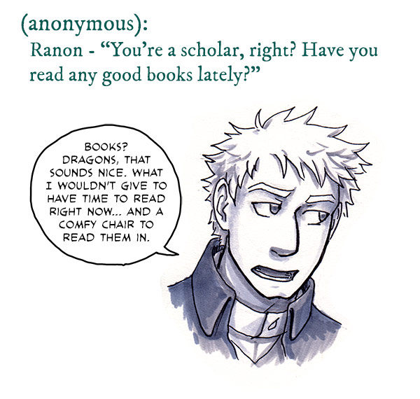 Reader-submitted questions for the characters, posted during between-chapter breaks.
